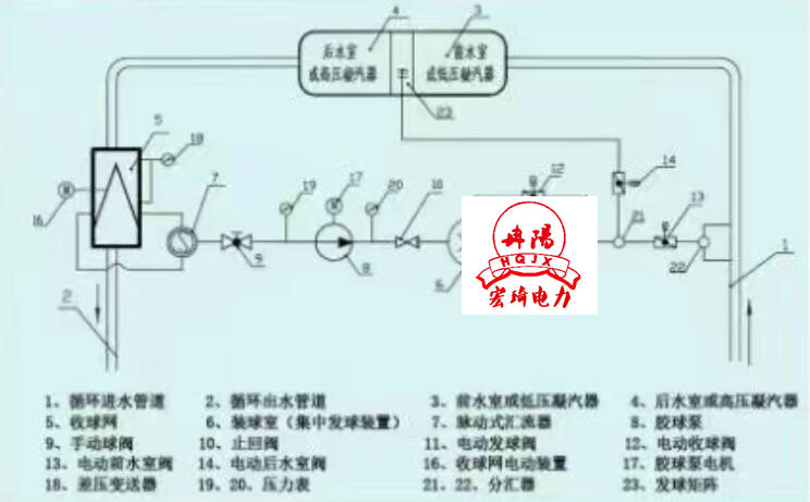 膠球清洗裝置凝汽器系統(多點集中海綿剝皮膠球清洗)技術說明